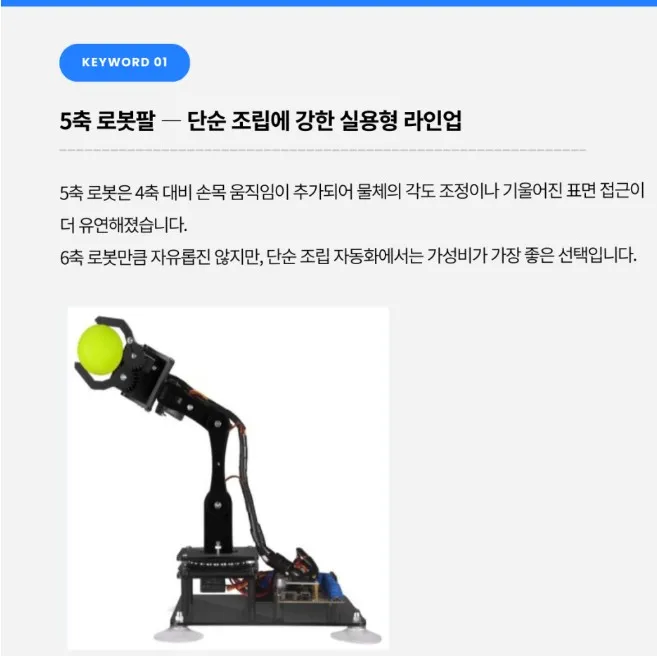 오늘은 산업용 로봇팔의 대표적인 4축, 5축, 6축을 비교하며