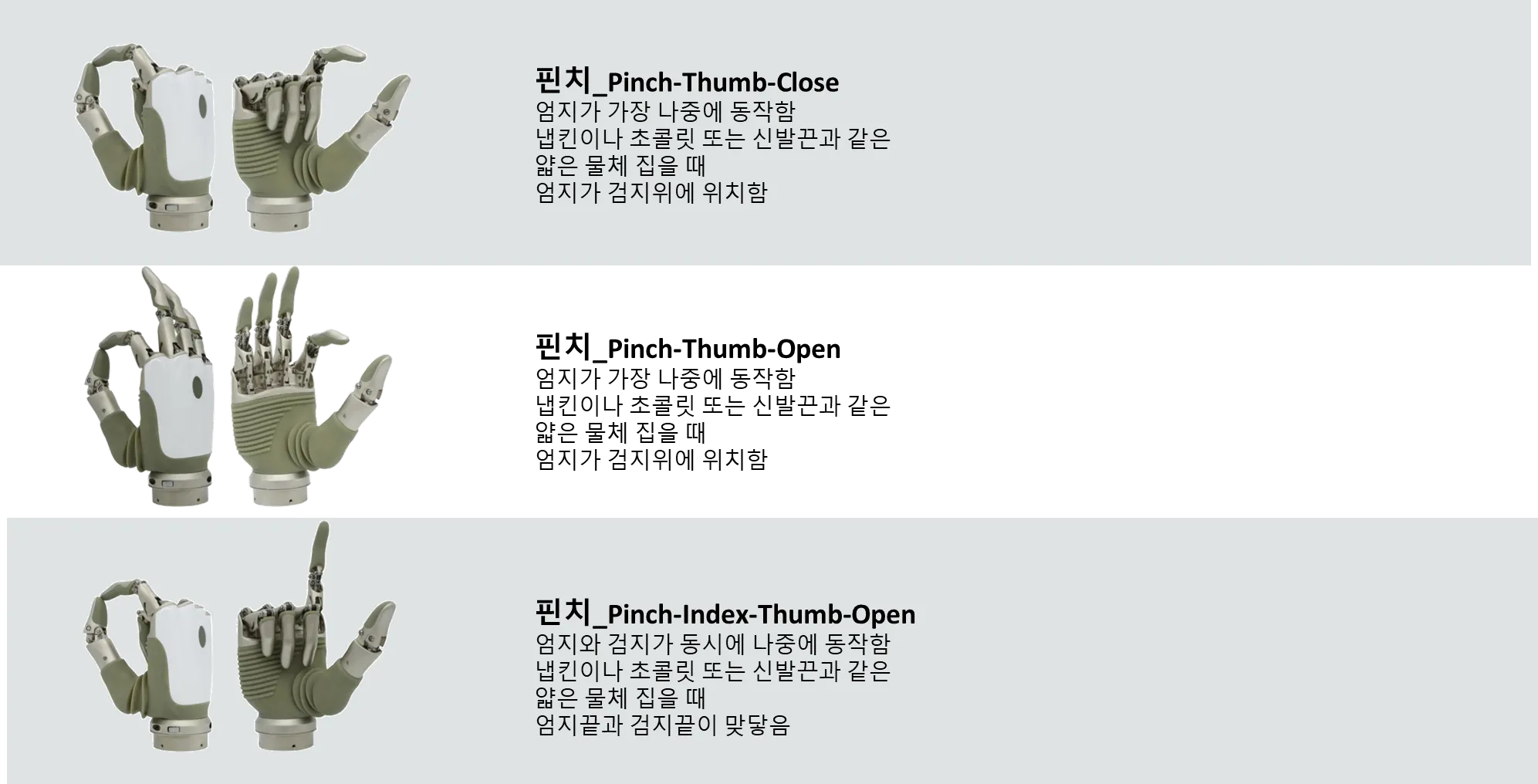 전용앱에서 2가지 모드/각 모드에서 3가지 그립동작 지정가능