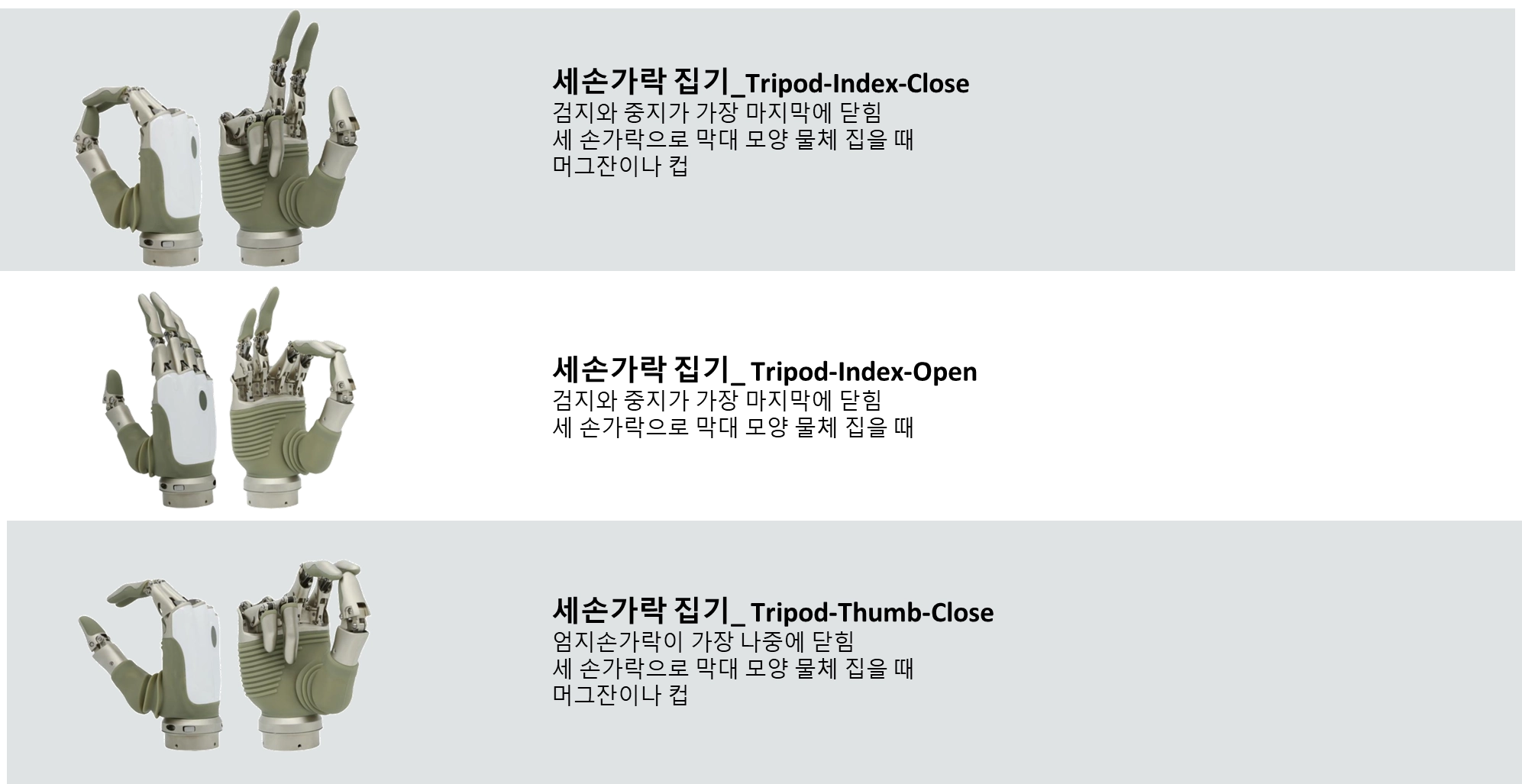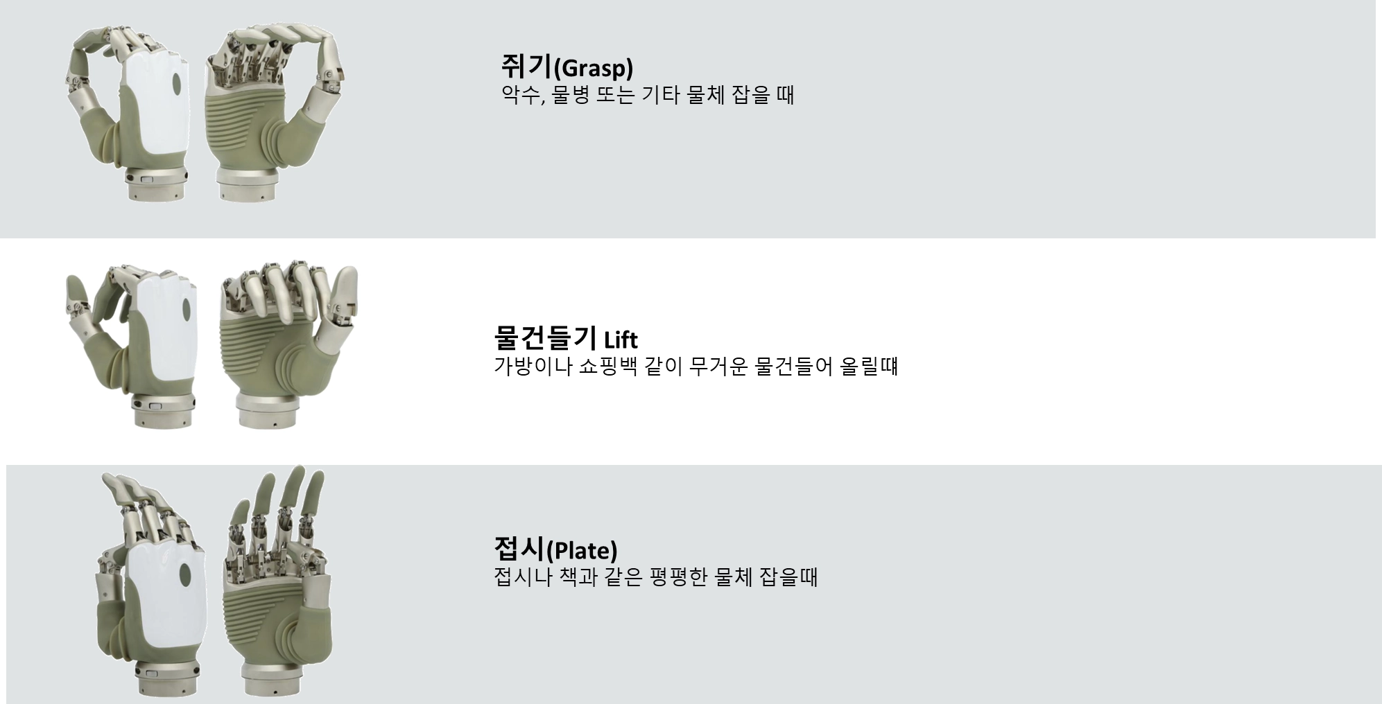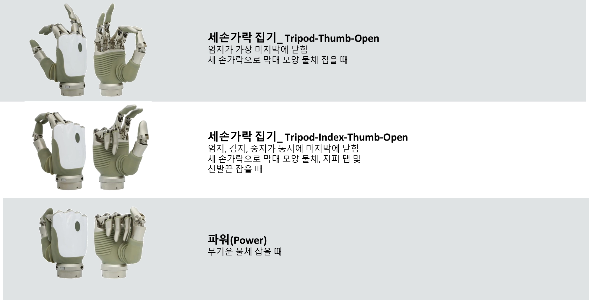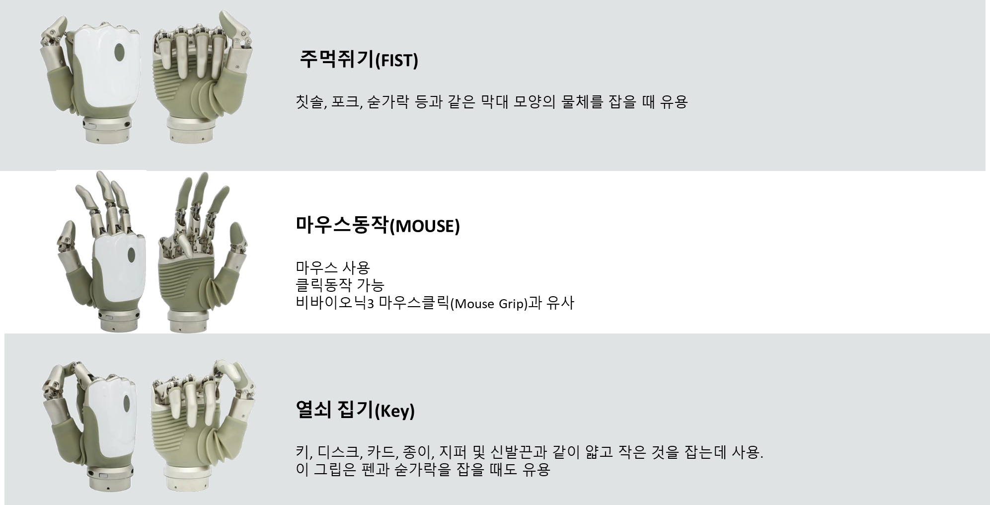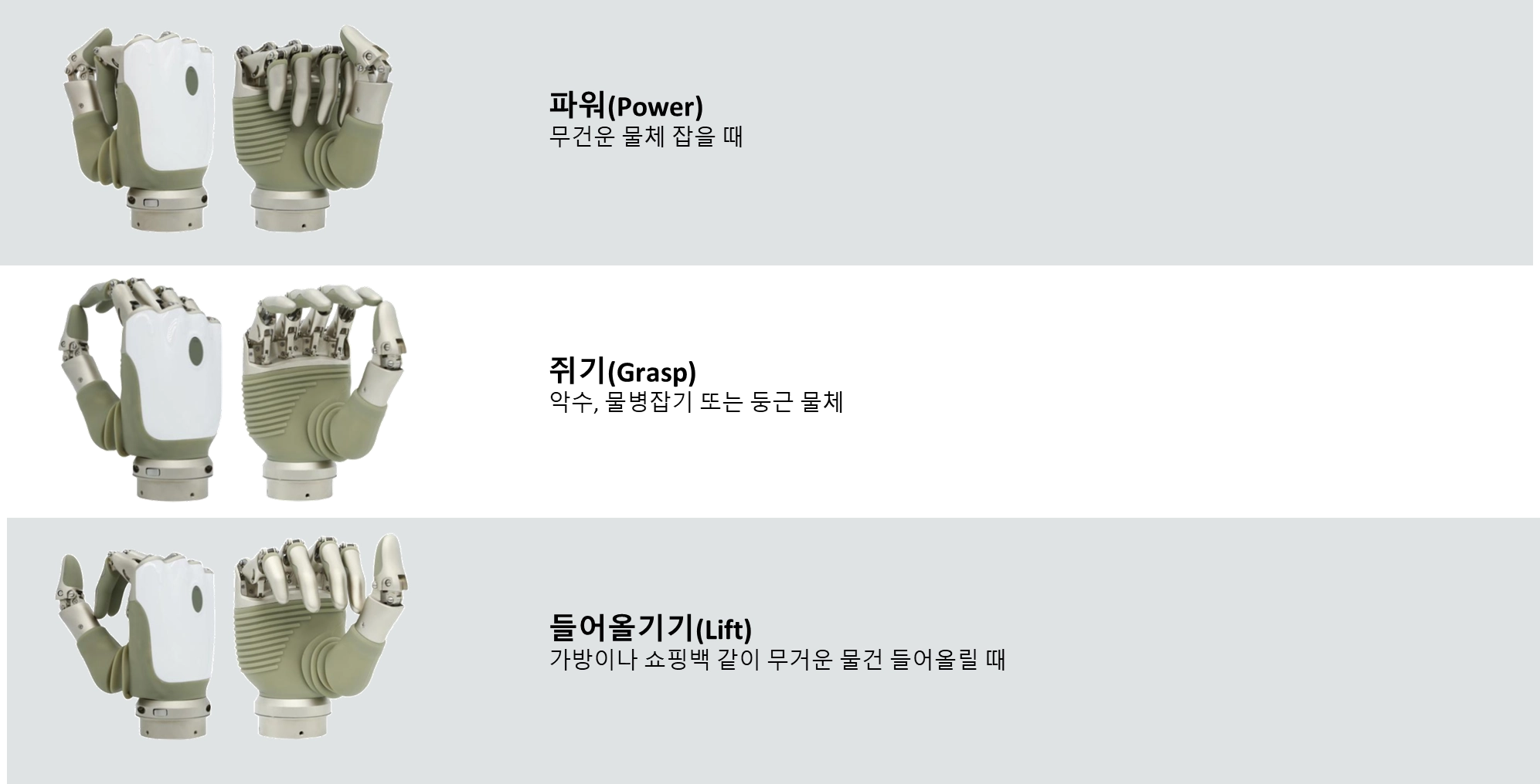 전용앱에서 2가지 모드/각 모드에서 3가지 그립동작 지정가능