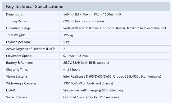 Payload per arm | 5kg |